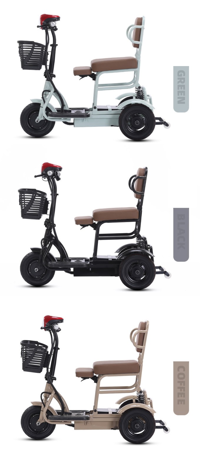 This compact folding electric tricycle is perfect for seniors and busy parents looking for a convenient way to get around. Lightweight and easy to fold, it fits in small spaces like car trunks or apartment corners, making it ideal for quick trips to the store or picking up kids from school. The stable three-wheel design keeps riders safe and balanced, while the padded seat and handlebars offer all-day comfort. With a quiet motor and simple controls, it’s a reliable choice for elderly mobility or daily family commutes.
